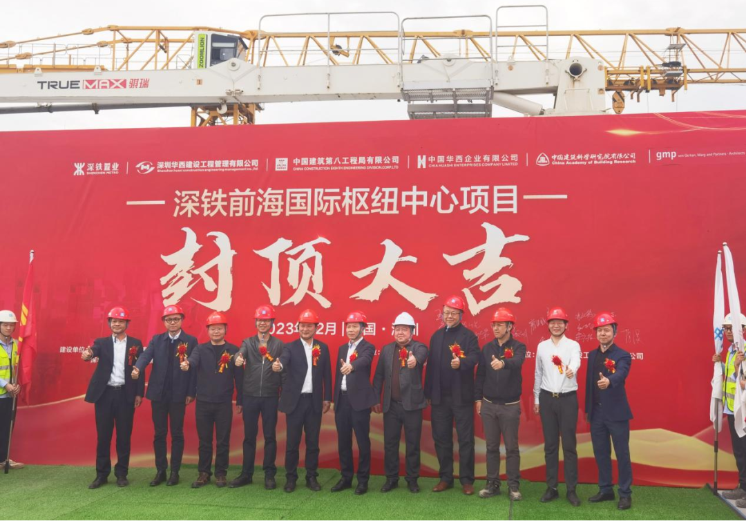 近日,利来w66[中国]最给利的老牌 与德国gmp联合设计的华南地区首个具有口岸功能的全地下综合交通枢纽—前海国际枢纽中心项目首栋塔楼(T4)主体结构顺利封顶。