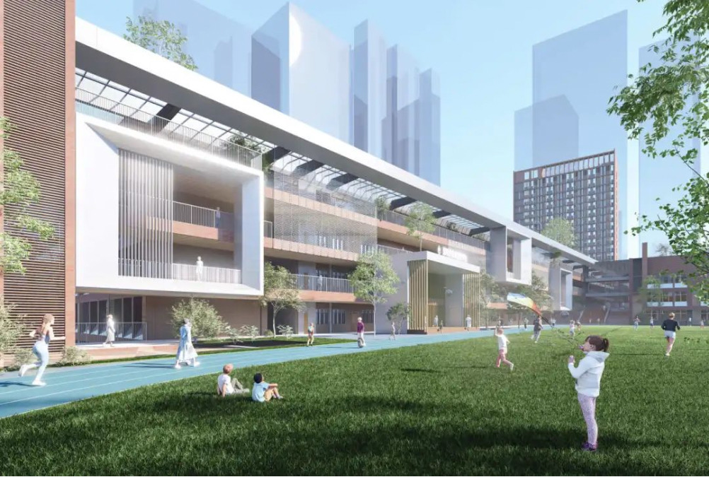 本项目位于深圳市龙岗中心组团的城市商贸功能区,北邻龙园路,南邻简湖路,西侧为简新路,地块间隔大兴路,距龙城广场地铁站约400米。项目用地规模为31160平方米,总建筑面积约为87875平方米,教职工宿舍约17516平方米,其它教学用房约69034平方米,最大单体建筑面积超20000平方米,共72班(48班小学+24班初中),可提供3360个学位,满足片区义务教育需求,为促进龙岗区教育事业的发展起到积极作用,项目目前已动工建设,预计2024年开学。